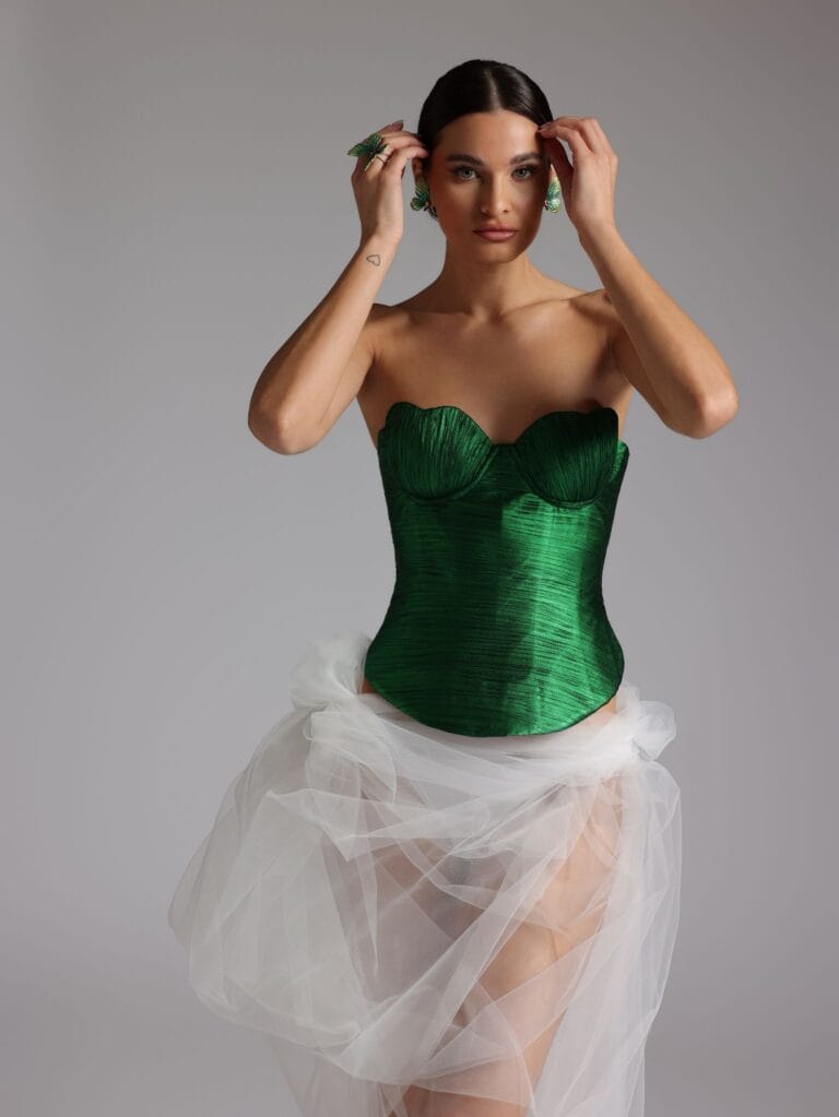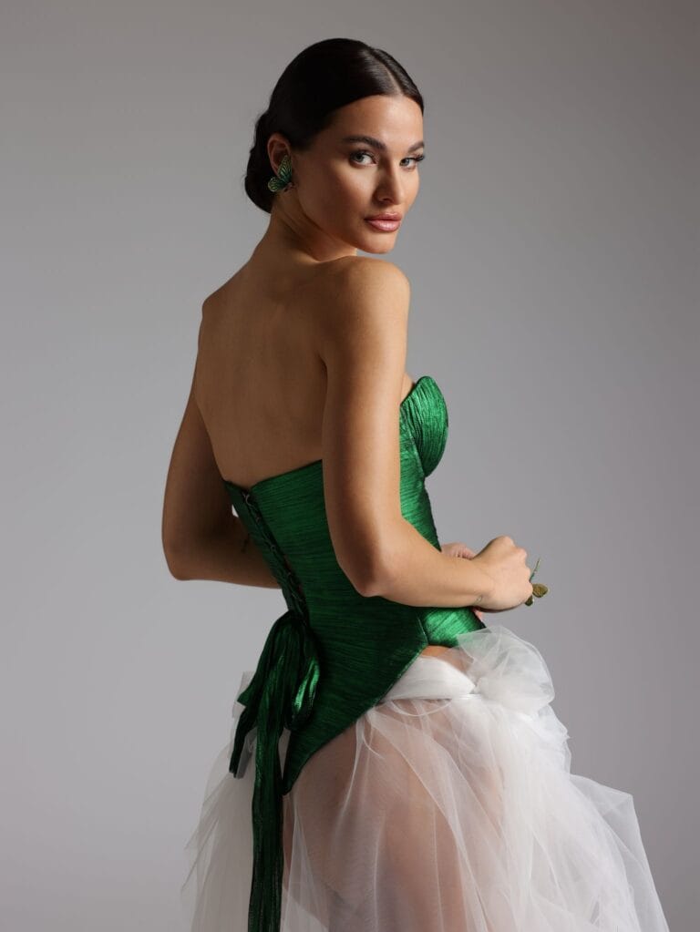 Inspired by organic shapes, natural textures, and the vibrant palette of terrestrial elements, this collection merges the refinement of couture design with the authentic harmony of the natural world