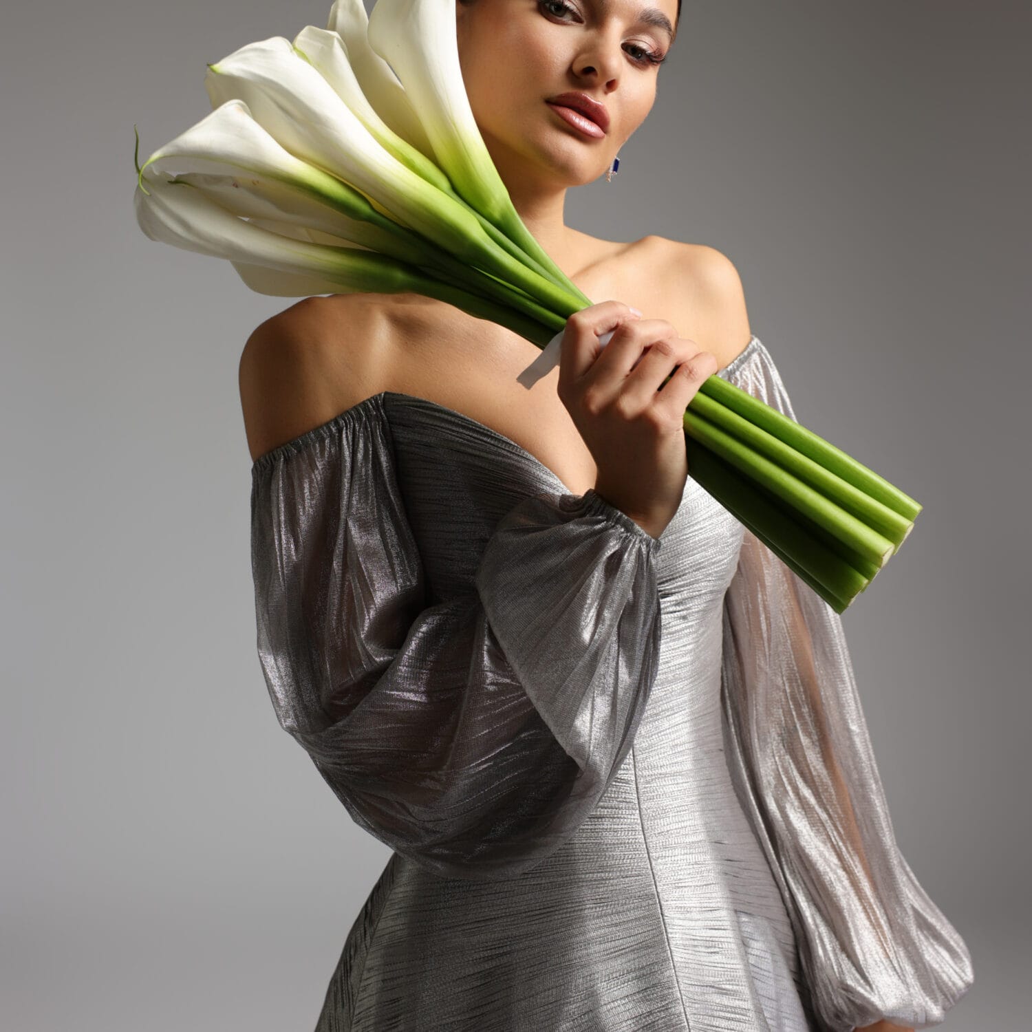 Ne-a rămas întipărită în minte o fotografie cu cireșii înfloriți din Japonia care ofereau un spectacol dumnezeiesc al naturii, nouă, oamenilor. Iar noi, am adăugat în colecția noastră o ramură delicată și fină, nascută geometric, sub forma literei „A” din taftaua de mătase Mikado, care scrie superlativul printr-o simplă atingere. Am „înmuiat” tăieturile simple și drepte ale rochiei Ilsa cu sensibilitatea florilor aplicate manual din organza de mătase, peste care am presărat cu grație perle, puf de mătase și paiete. O rochie care redefinește profunzimea frumuseții autentice.
