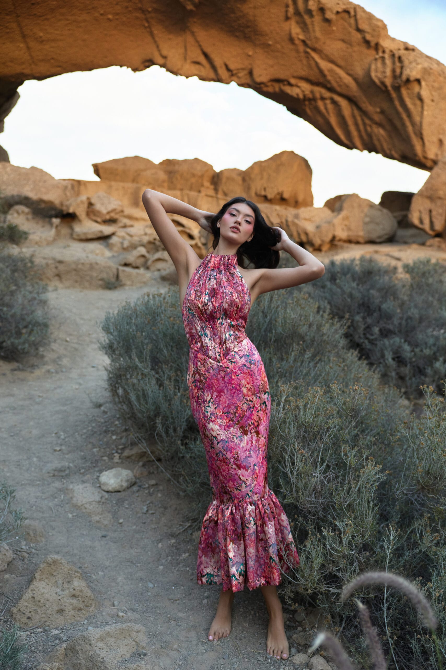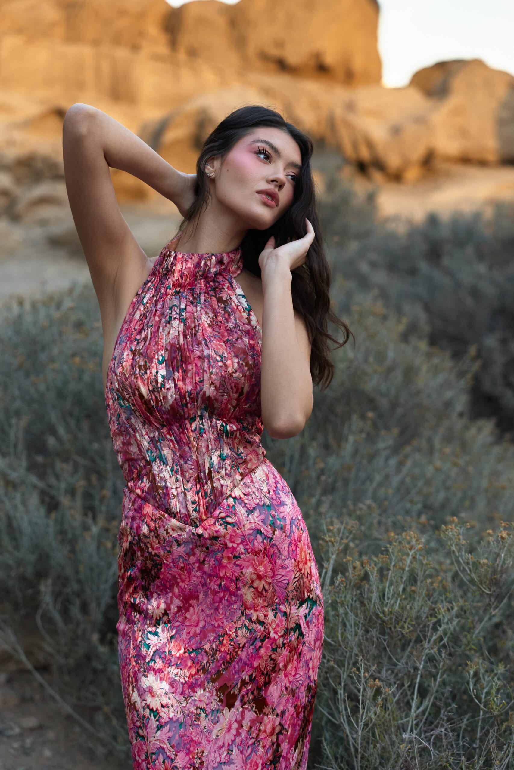 Ai nevoie doar de puțină magie, puțină dragoste și un strop de roz ca deșertul să devină o adevărată oază. Rochia Rosely este creată din mătase naturală, purtând un imprimeu floral superb, ca o grădină de bujori în floare, în plin sezon. Muliebrity te invită să alegi nuanța ta preferată dintr-o paletă bogată de culori: derivate de roz, cu sau fără imprimeu floral, tonuri de verde, silver sau gold. Lasă-te inspirată de natură!