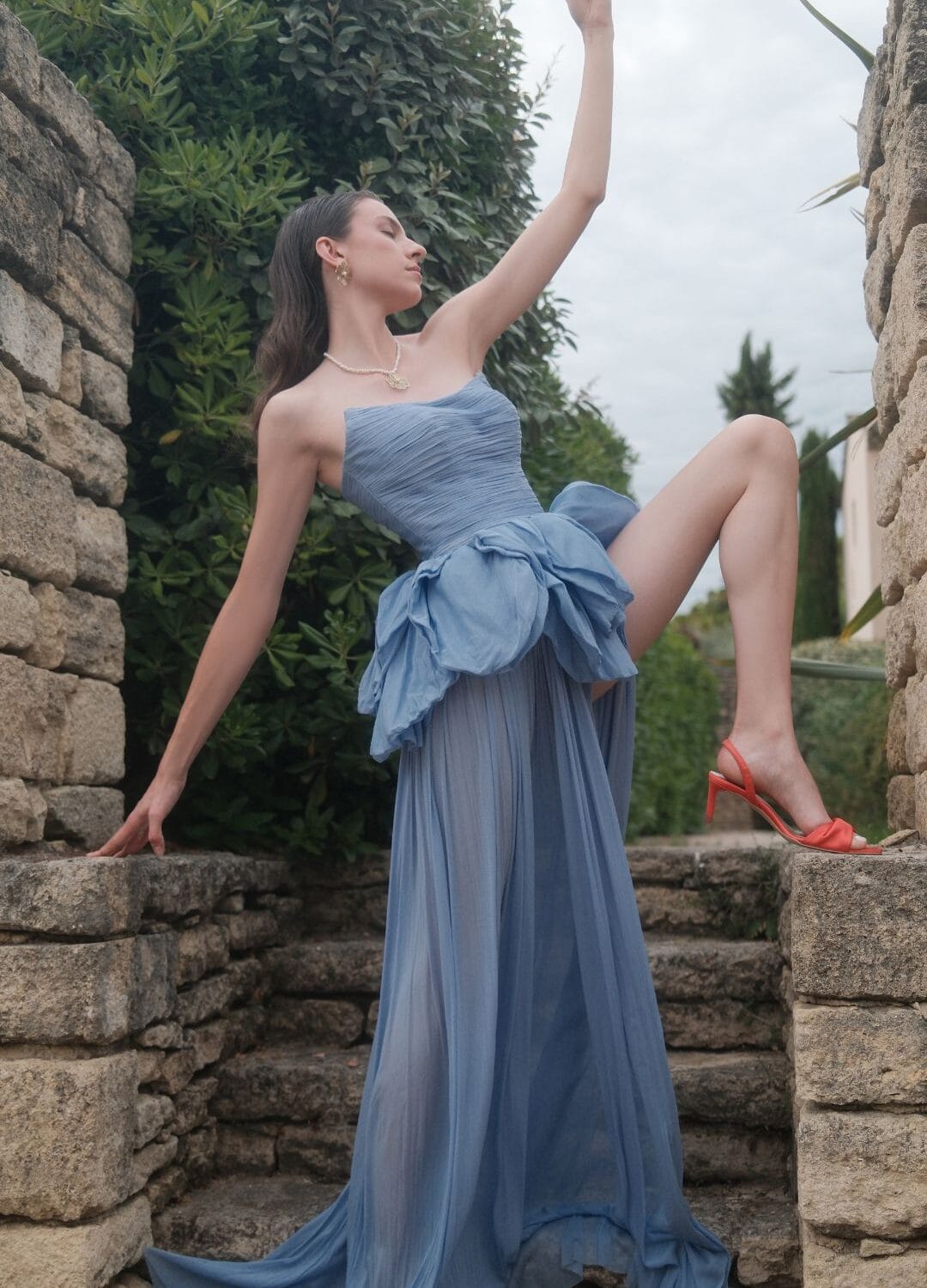 Văpaie, dor, fantezie – atât de multe cuvinte ce descriu o singură rochie. Un univers în care am vrea să locuim redat pe o rochie ce emană doar liniște și candoare.